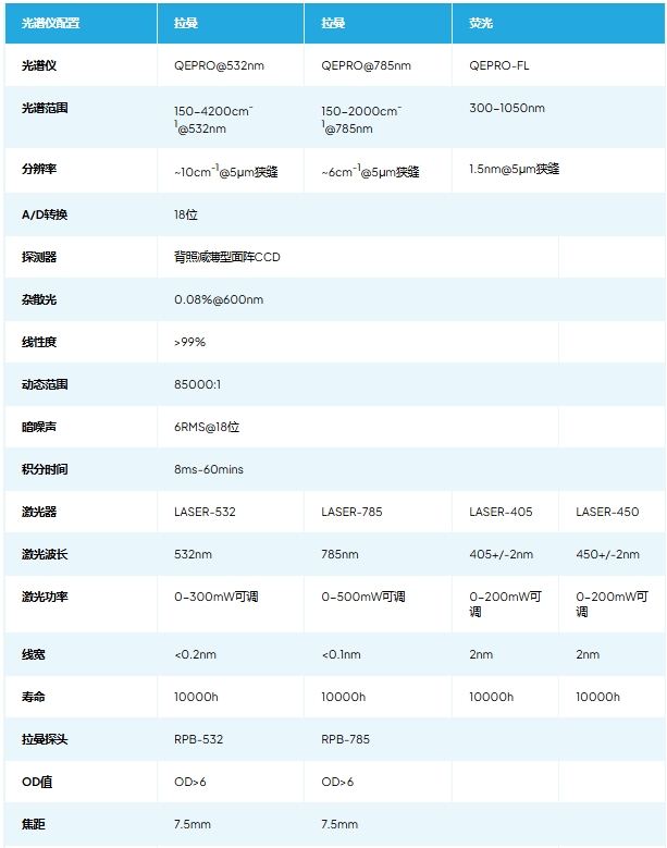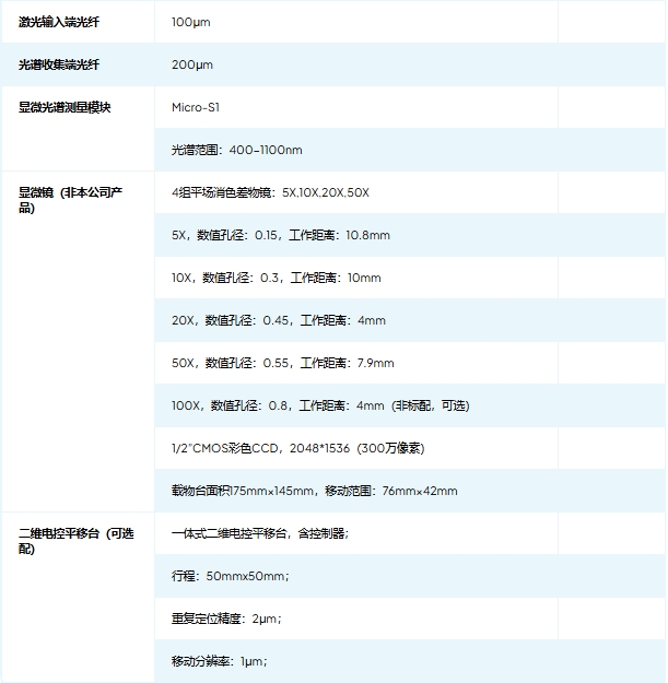 拉曼探头可直接插入显微光谱测试模块中,从而快速实现拉曼光谱测量。支持光谱范围覆盖400-1100nm,仅需通过更换探头和激光器,便可实现488nm、532nm、633nm、785nm激发波长的拉曼光谱测量。