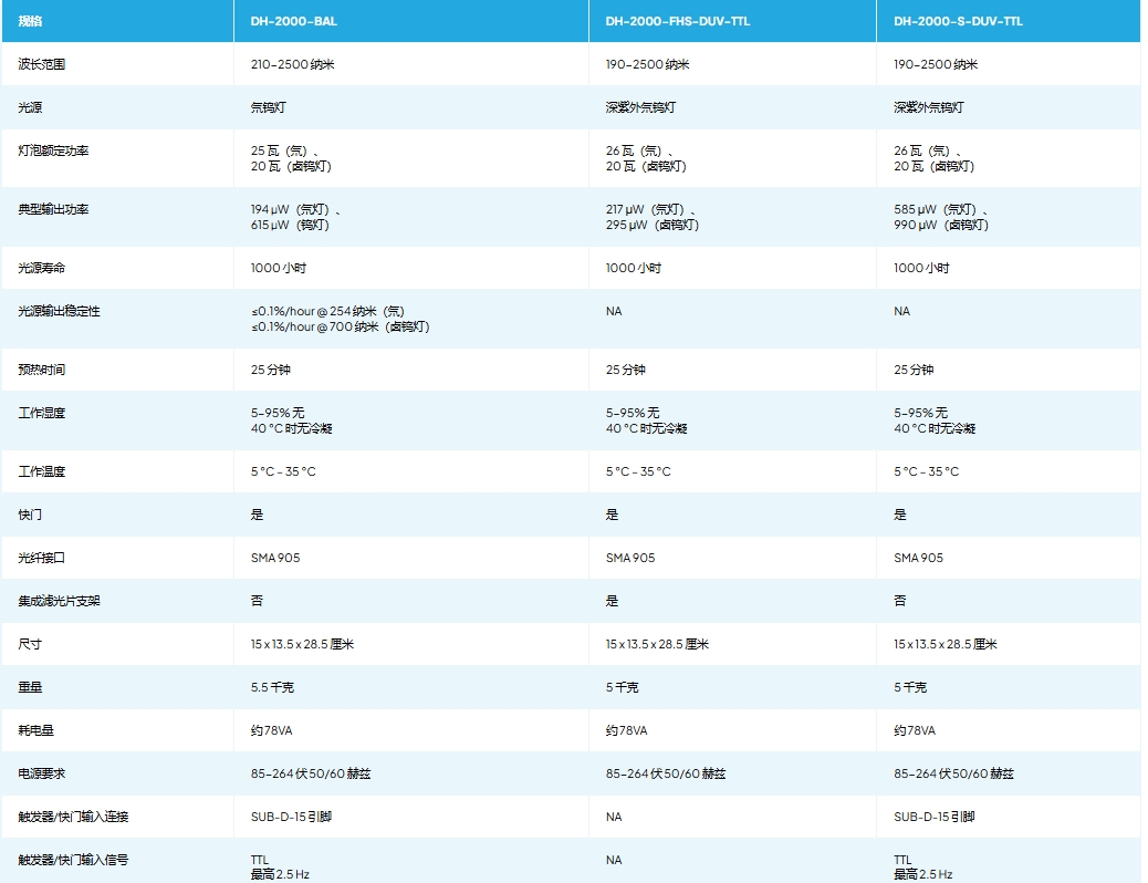 对于需要深紫外光的用户,DH-2000-FHS-DUV-TTL和DH-2000-S-DUV-TTL型号特别配备了深紫外氘灯,可将输出范围扩展至190-2500纳米。