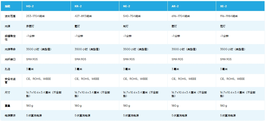 可选校准光源包括汞氩灯(253-1704 nm)、氪灯(427-893 nm)、氖灯(540-754 nm)、氩灯(696-1704 nm)和氙灯(916-1984 nm)。提供多种波长范围和发射谱线,用户可以更方便地选择光源或光源组合,以匹配特定测量范围内的目标分析波长。